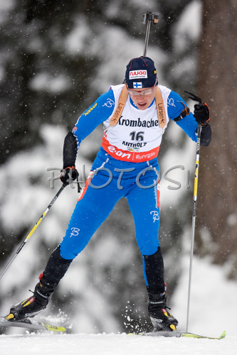 : Anita Hakala of Finland skiing during women 7.5 km Sprint Biathlon World Cup race in Anterselva, Italy. Sprint race of Women IBU Biathlon World Cup was held in Anterselva, Italy on 17th of January 2008. Anita Hakala placed 66th