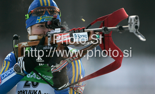 : Anna Carin Olofsson-Zidek of Sweden during women 15km individual race of e.on Ruhrgas IBU Biathlon World Cup 2009-10. Women individual race of e.on Ruhrgas IBU Biathlon World Cup was held in Pokljuka, Slovenia, on 17th of December 2009.