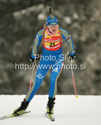 : Winner Helena Jonsson of Sweden during women 15km individual race of e.on Ruhrgas IBU Biathlon World Cup 2009-10. Women individual race of e.on Ruhrgas IBU Biathlon World Cup was held in Pokljuka, Slovenia, on 17th of December 2009.