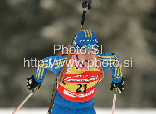 : Winner Helena Jonsson of Sweden during women 15km individual race of e.on Ruhrgas IBU Biathlon World Cup 2009-10. Women individual race of e.on Ruhrgas IBU Biathlon World Cup was held in Pokljuka, Slovenia, on 17th of December 2009.