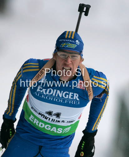 : Mattias Nilsson of Sweden during men 20km individual race of e.on Ruhrgas IBU Biathlon World Cup 2009-10. Men individual race of e.on Ruhrgas IBU Biathlon World Cup was held in Pokljuka, Slovenia, on 17th of December 2009.