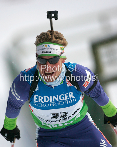 : Klemen Bauer of Slovenia during men 20km individual race of e.on Ruhrgas IBU Biathlon World Cup 2009-10. Men individual race of e.on Ruhrgas IBU Biathlon World Cup was held in Pokljuka, Slovenia, on 17th of December 2009.