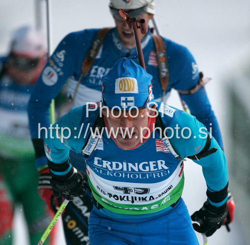 : Paavo Puurunen of Finland during men 20km individual race of e.on Ruhrgas IBU Biathlon World Cup 2009-10. Men individual race of e.on Ruhrgas IBU Biathlon World Cup was held in Pokljuka, Slovenia, on 17th of December 2009.