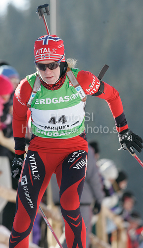 : Kari Henneseid Eie of Norway during women 10km pursuit race of e.on Ruhrgas IBU Biathlon World Cup 2009-10. Women pursuit race of e.on Ruhrgas IBU Biathlon World Cup was held in Pokljuka, Slovenia, on 20th of December 2009.