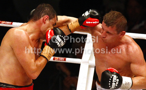 : Denis Simcic of Slovenia and Istvan Varga of Romunia during WBF International boxing match. WBF International boxing match between Simcic and Varga was held on 4th of September 2010 in Stozice Arena in Ljubljana, Slovenia.