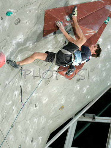 Kranj ,Slovenia - 16.11.2008 : Winner Klemen Becan of Slovenia climbing during men finals of last IFSC Sport Climbing World cup of 2008 season. Final race of IFSC Sport Climbing World Cup of 2008 season was held in Kranj, Slovenia on 16th of November 2008. Photo by: Primoz Jeroncic