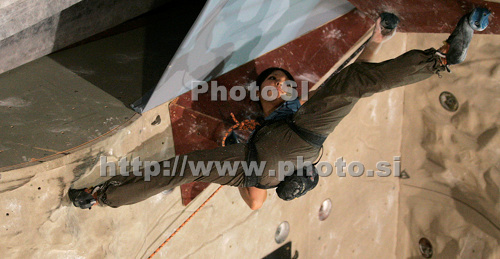 : Yuka Kobayashi of Japan climbing during women finals of last IFSC Sport Climbing World cup of 2009 season. Final race of IFSC Sport Climbing World Cup of 2009 season was held in Kranj, Slovenia on 15th of November 2009.