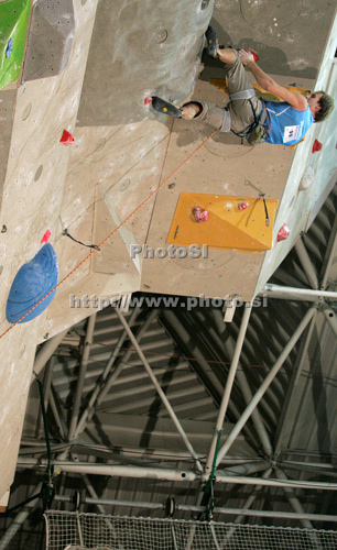 : Mikhail Chernikov of Russia climbing during men finals of last IFSC Sport Climbing World cup of 2009 season. Final race of IFSC Sport Climbing World Cup of 2009 season was held in Kranj, Slovenia on 15th of November 2009.