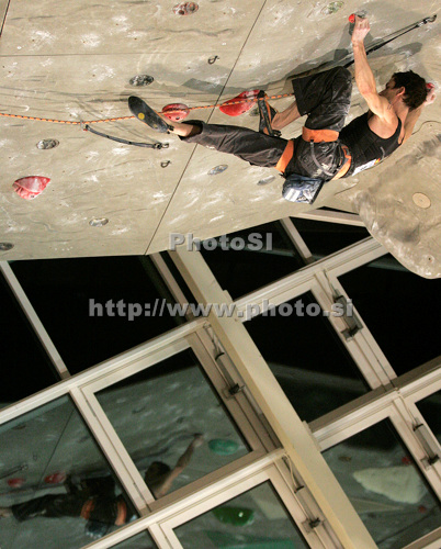 Kranj ,Slovenia - 15.11.2009 : Patxi Usobiaga Lakunza of Spain climbing during men finals of last IFSC Sport Climbing World cup of 2009 season. Final race of IFSC Sport Climbing World Cup of 2009 season was held in Kranj, Slovenia on 15th of November 2009. Photo by: Primoz Jeroncic
