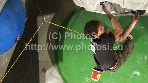 : Urban Primozic of Sloveinaduring men finals of IFSC Sport Climbing World cup 2011. Finals of IFSC Sport Climbing World Cup 2011 were held in Kranj, Slovenia on 20th of November 2011.