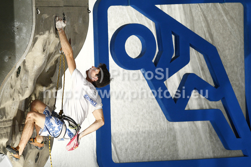 : Manuel Romain of France during men finals of IFSC Sport Climbing World cup 2011. Finals of IFSC Sport Climbing World Cup 2011 were held in Kranj, Slovenia on 20th of November 2011.
