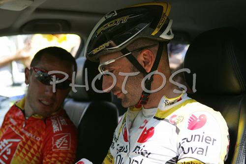: Joaquin Rodriguez Oliver (Spain) of Caisse D Epargne (L) and Leonardo Piepoli (Italy) of Saunier Duval-Scott (R) at starting area of 13th stage of Giro d Italia, from Modena to Cittadella (177 km). 13th stage was held on 23rd of May 2008.