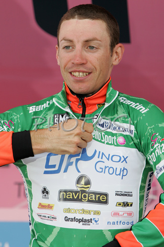 Plan de Corones ,Italy - 26.05.2008 : Emanuele Sella (Italy) of CSF Group Navigare in green jersey as the best in the mountain general classification after individual mountain chronometre of 16th stage of Giro d Italia, from San Vigilio di Marebbe to Plan de Corones. 16th stage was held on 26th of May 2008. Photo by: Mitja Smid Bricelj