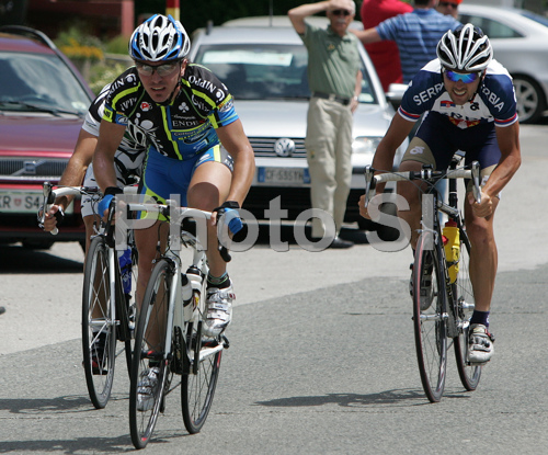 : At first intermediate sprint classification winner Pierpaolo Tondo (ITA, Nippor Endeka), second placed behind him Domenico Loria (ITA, Katay cycling team) and third placed Dragan Spasic )SRB, National team Srbija) during race for 41st Grand prix of Kranj, Memorial of Filip Majcen. The race was 161,6 km long and was held on 31st of May, 2008.