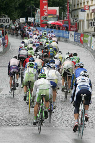 : Peloton in 4th stage from Celje to Novo mesto (157 km) of the 15th Tour de Slovenie. The race was held on 14th of June, 2008.