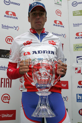 : The best young rider in overall classification Robert Kiserlovski of Croatia Adria Mobil) in 4th stage from Celje to Novo mesto (157 km) of the 15th Tour de Slovenie. The race was held on 14th of June, 2008.