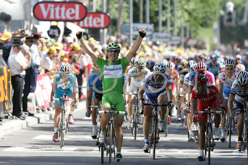 : Winner Oscar Freire (Spa, Rabobank) at 14th stage from Nimes to Digne les Bains (194,5 km) of Tour de France, 2008. The stage was held on 19th of July, 2008.