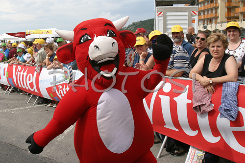 : Mascotte of sponsor Vittel at 15th stage from Embrun (FRA) to Prato Nevoso (ITA, 183 km) of Tour de France, 2008. The stage was held on 20th of July, 2008.