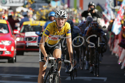 : Frank Schleck (Lux, CSC-Saxo Bank) arrived as fifth at the finish of the 17th stage from Embrun to L Alpe-d Huez of Tour de France. The stage was held on 23rd of July, 2008 and it was 210,5 km long.