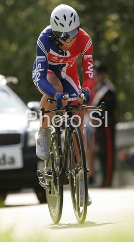 : Sharon Laws of Great Britain riding during Women elite time trial race of UCI Road Cycling World Championships in Varese, Italy. Women elite time trial of UCI Road cycling World Championships was held in Varese, Italy, on Wednesday 24th of September 2008.