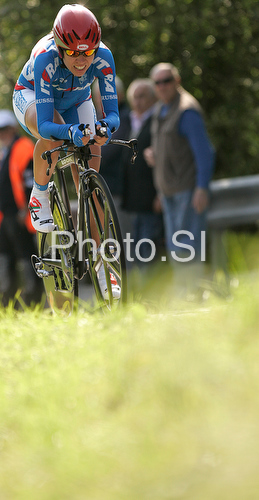 : Fourth placed Tatiana Antoshina of Russia riding during Women elite time trial race of UCI Road Cycling World Championships in Varese, Italy. Women elite time trial of UCI Road cycling World Championships was held in Varese, Italy, on Wednesday 24th of September 2008.