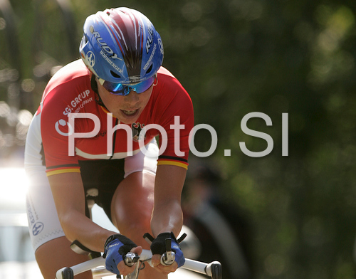 : Ninth placed Charlotte Becker of Germany riding during Women elite time trial race of UCI Road Cycling World Championships in Varese, Italy. Women elite time trial of UCI Road cycling World Championships was held in Varese, Italy, on Wednesday 24th of September 2008.
