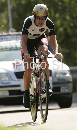 : Kristin Armstrong of USA riding during Women elite time trial race of UCI Road Cycling World Championships in Varese, Italy. Women elite time trial of UCI Road cycling World Championships was held in Varese, Italy, on Wednesday 24th of September 2008.