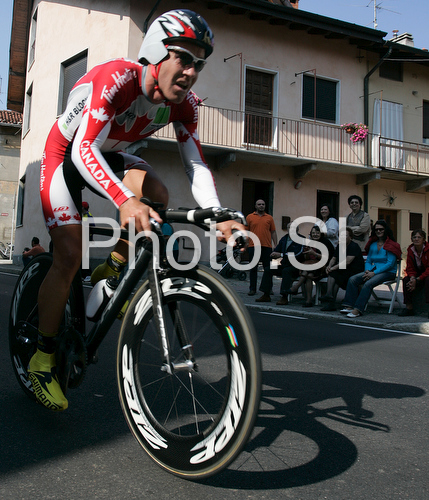 : Second placed Svein Tuft of Canada riding during Men elite time trial race of UCI Road Cycling World Championships in Varese, Italy. Men elite time trial of UCI Road cycling World Championships was held in Varese, Italy, on Thursday 25th of September 2008.