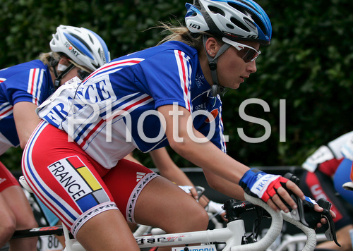 : Karine Gautard of France riding during Women elite road race of UCI Road Cycling World Championships in Varese, Italy. Women Elite road race of UCI Road cycling World Championships was held in Varese, Italy, on Saturday 27th of September 2008.