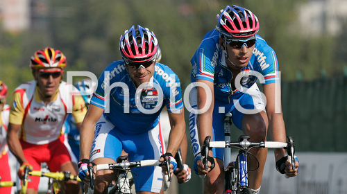 : Winner Alessandro Ballan of Italy leading group during Men elite road race of UCI Road Cycling World Championships in Varese, Italy. Men Elite road race of UCI Road cycling World Championships was held in Varese, Italy, on Sunday 28th of September 2008.
