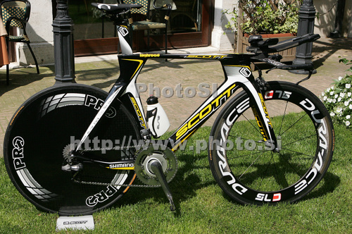 : Presenting the fastest time trial Scott bike on the presentation of Team Columbia Highroad. Presentation of Team Columbia Highroad was held in Venezia, Italy, before start of 92nd of Giro di Italy on 8th of May 2009.