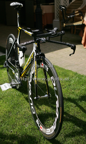 : Presenting the fastest time trial Scott bike on the presentation of Team Columbia Highroad. Presentation of Team Columbia Highroad was held in Venezia, Italy, before start of 92nd of Giro di Italy on 8th of May 2009.