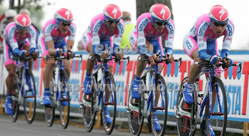 : Team Lampre NGC with the Damiano Cunego of Italy riding during first stage of 92nd Giro d Italia, team time trial race. First stage of 92nd Giro d Italia was held on 9th of May 2009, in Venezia, Italy.