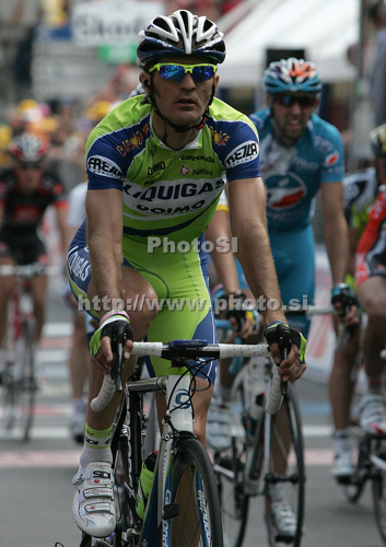 : Gorazd Stangelj of Slovenia (Liquigas) in finish of third stage of 92nd Giro d Italia. Third stage of 92nd Giro d Italia in length of 198km was held on 11th of May 2009, and was leading riders from Grado, Italy, to Valdobbiadene, Italy.