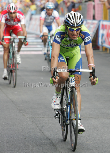 San Martino di Castrozza ,Italy - 12.05.2009 : Third placed Franco Pellizotti of Italy (Liquigas) in finish of fourth stage of 92nd Giro d Italia. Fourth stage of 92nd Giro d Italia in length of 162km was held on 12th of May 2009, and was leading riders from Padova, Italy to San Martino di Castrozza, Italy. Photo by: Mitja Smid Bricelj/PhotoSI