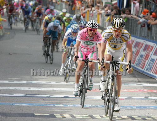 Mayrhofen im Zillertal ,Austria - 14.05.2009 : Michael Rogers of Australia (Team Columbia - Highroad) and behind him Danilo Di Luca of Italy (LPR Brakes - Farnese Vini) in finish of sixth stage of 92nd Giro d Italia. Sixth stage of 92nd Giro d Italia in length of 248km was held on 14th of May 2009, and was leading riders from Bressanone, Italy to Mayrhofen im Zillertal, Austria. Photo by: Mitja Smid Bricelj