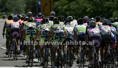 Crni kal ,Slovenia - 18.06.2009 : Peloton riding in first stage of Tour de Slovenie 2009 from Koper, Slovenia to Villach (Austria). The first stage was 229 km long and it was held on Thursday, 18th of June, 2009. Photo by: Mitja Smid Bricelj/PhotoSI