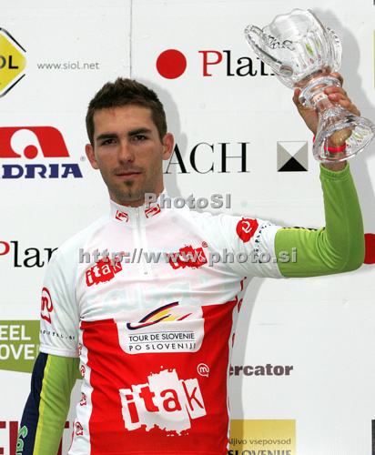: Blaz Furdi of Slovenia (Sava) as the best young rider in overall classification at the flower ceremony of the fourth stage of Tour de Slovenie 2009 from Sentjernej to Novo mesto. The fourth stage was 153 km long and it was held on Sunday, 21st of June, 2009.