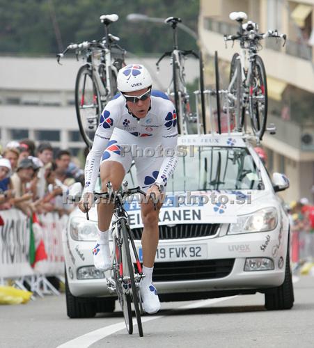 : Jussi Veikkanen of Finland (Francaise des Jeux) riding at the individual time trial in the first stage of Tour de France (15,5 km). The individual time trial was held on Saturday, 4th of july in Monaco.