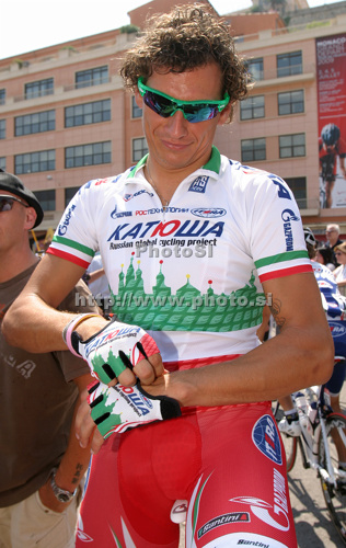 : Filippo Pozzato of Italy (Team Katusha) before the start of second stage of Tour de France from Monaco to Brignoles (187 km). The second stage was held on Sunday, 5th of July.