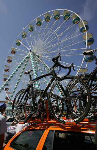 : Detail of circus wheel of Marseille before the start of the third stage of Tour de France from Marseille to Le Grande Motte (196,5 km). The third stage was held on Monday, 6th of July.