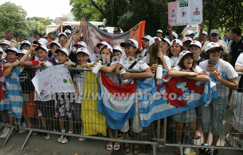 : Young fans of Andy and Frank Schleck before the start of the team time trial of the fourth stage of Tour de France from Montpellier to Montpellier (39 km). The fourth stage was held on Tuesday, 7th of July.