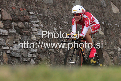 : Third placed Linda Melanie Villumsen of Denmark riding during women UCI Road cycling World Championships time trial race in Mendrisio, Switzerland. 26.8km long women time trial race was held in Mendrisio, Switzerland, on 23rd of September 2009.