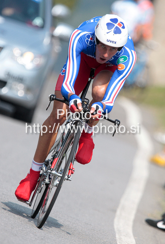 : Jerome Coppel of France riding during Men Elite UCI Road cycling World Championships time trial race in Mendrisio, Switzerland. 49.8km long Men Elite time trial race was held in Mendrisio, Switzerland, on 24th of September 2009.