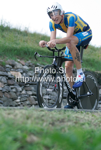 : Second placed Gustav Larsson of Sweden riding during Men Elite UCI Road cycling World Championships time trial race in Mendrisio, Switzerland. 49.8km long Men Elite time trial race was held in Mendrisio, Switzerland, on 24th of September 2009.