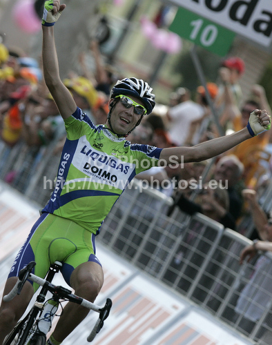 : Winner of the stage Vincenzo Nibali of Italy (Liquigas Doimo) finishing the 14th stage of Giro d Italia from Ferrara to Asolo. The stage was 205 km long. The 14th stage of Giro d Italia 2010 from Ferrara to Asolo was held on Saturday, 22nd of May 2010 in Italy.