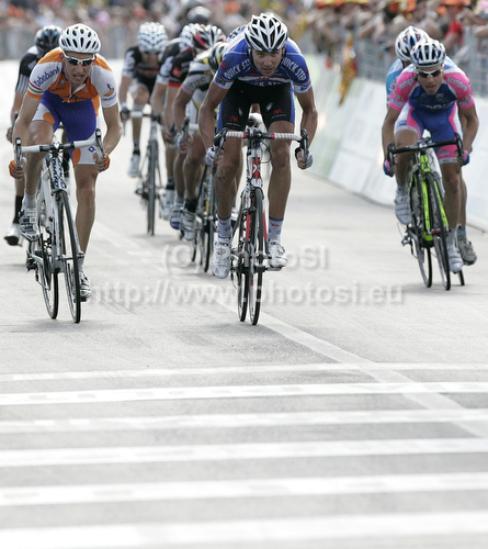 Asolo ,Italy - 22.05.2010 : From L to R: seventh placed Bauke Mollema of Nederland (Rabobank), sixth placed Branislau Samoilau of Belarus (Quickstep) and Damiano Cunego of Italy (Lampre Farnese Vini) finishing the 14th stage of Giro d Italia from Ferrara to Asolo. The stage was 205 km long. The 14th stage of Giro d Italia 2010 from Ferrara to Asolo was held on Saturday, 22nd of May 2010 in Italy. Photo by: Mitja Smid Bricelj/PhotoSI