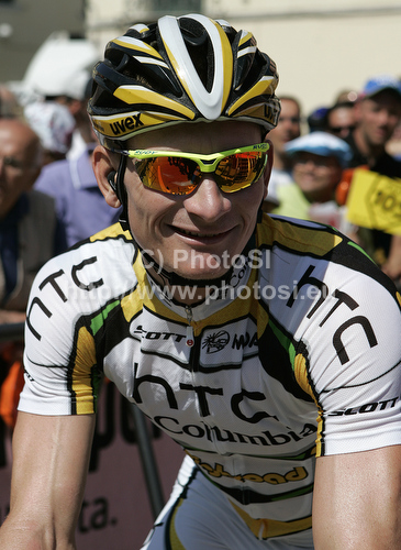 : Andre Greipel of Germany (Team HTC Columbia) before the start of the 15th stage of Giro d Italia from Mestre to Monte Zoncolan. The stage was 222 km long. The 15th stage of Giro d Italia 2010 from Mestre to Monte Zoncolan was held on Sunday, 23rd of May 2010 in Italy.