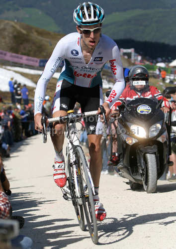 : Charles Wegelius of Great Britain (Omega Pharma Lotto) riding the indivudal time trial of the 16th stage of Giro dItalia from St. Vigil (San Vigilio di Marebbe) to Kronplatz (Plan de Corones). The individual time trial was 12,9 km long. The 16th stage of Giro dItalia 2010 from St. Vigil (San Vigilio di Marebbe) to Kronplatz (Plan de Corones) was held on Tuesday, 25th of May 2010 in Italy.