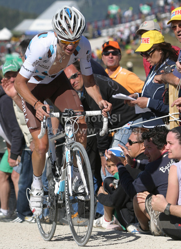Plan de Corones / Kronplatz ,Italy - 25.05.2010 : John Gadret of France (Ag2r La Mondiale) riding the indivudal time trial of the 16th stage of Giro dItalia from St. Vigil (San Vigilio di Marebbe) to Kronplatz (Plan de Corones). The individual time trial was 12,9 km long. The 16th stage of Giro dItalia 2010 from St. Vigil (San Vigilio di Marebbe) to Kronplatz (Plan de Corones) was held on Tuesday, 25th of May 2010 in Italy. Photo by: Mitja Smid Bricelj/PhotoSI